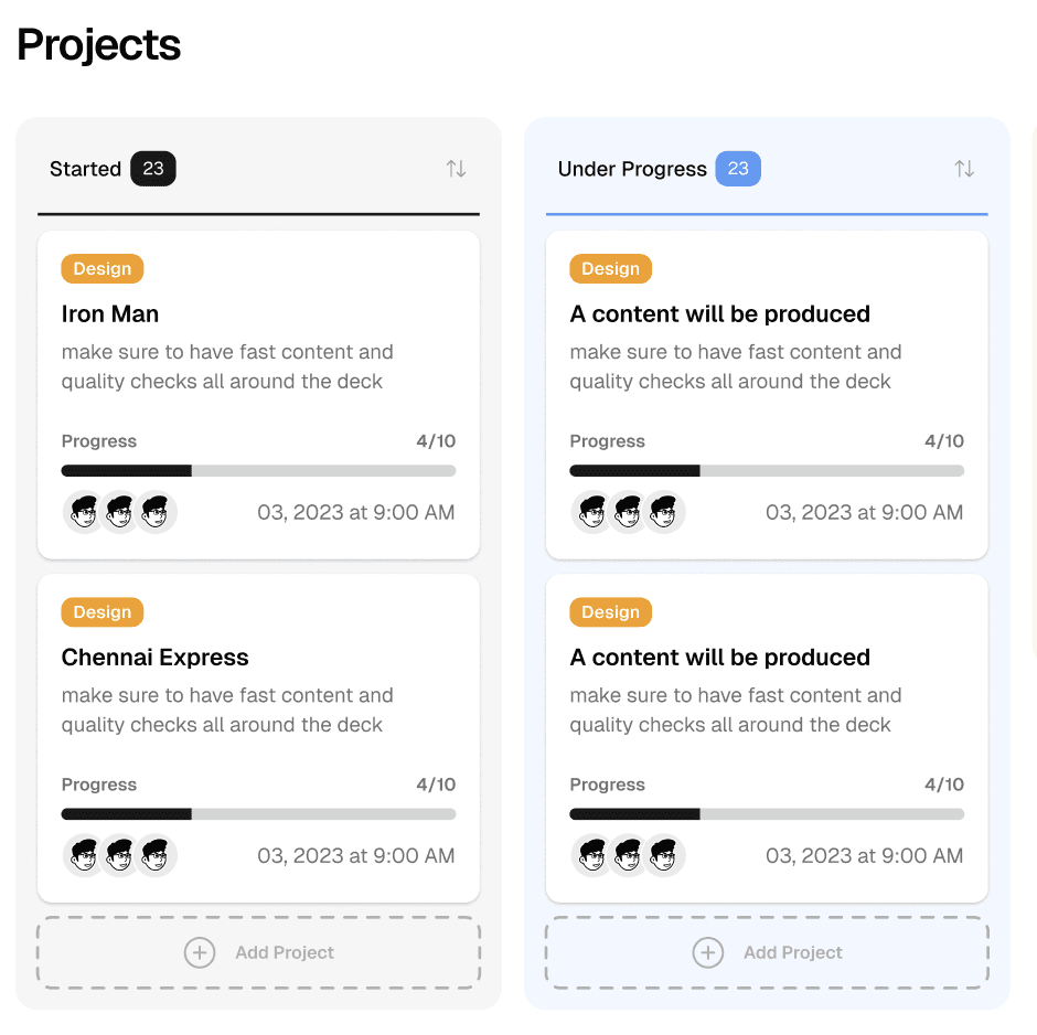 Every project lives in a single container. The creative brief, reference files, deliverables, team tasks, and client assets are all connected — so your team always has context, and nothing falls through the cracks.